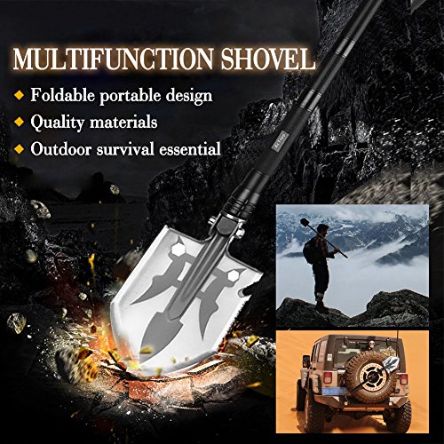 More than 15 multi-serve as survival instrument set together with shovel, dig, reduce, compass, hearth starter, bottle opener, emergency and so forth.,