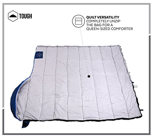 VERSATILITY: Your machine cleanable sleeping bag comes with a compression sack, allowing it to pack all the way down to 15x8x8 inches. Want a guest blanket? Just unzip our sleeping bag, and you have got a queen-sized comforter. How to hand!