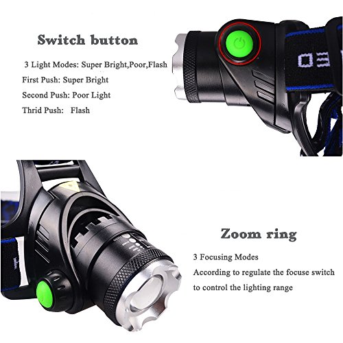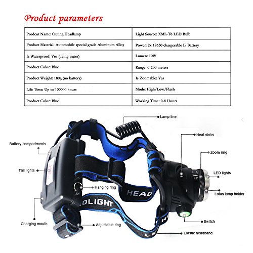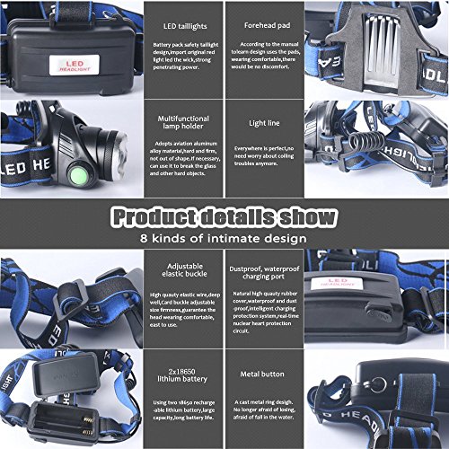 *.Waterproof,Adjustable,Handsfree,Zoomable,Anti corrosion! Three switch modes:low light/ highlight/flash, adjustable focusing.