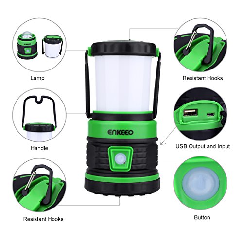 Enkeeo LED Camping Lantern Light Rechargeable Battery 300 Lumens 5 Modes Ultra Bright Flashlight with USB Input/Output, 2 Resistant Hooks for Hiking Camping Emergencies Outages (Water-Resistant)