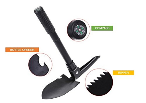 Multi-Function 4-in-1 Folding Shovel Spade with Select, Saw, Compass is perfect for the on-the-go adventurist, camper, hunter, hiker, cyclist or mountain climber. Open soda bottles, beer or wine bottles with the bottle opener edge whilst taking part in the outside Top Quality: Wrought iron design, makes it sturdy and firm. Highest for the garden or to dig holes and arrange camp. How a couple of winter survival emergency kit for the snow sledders, skiers, and people who get stranded at the road and want to make it during the night. Simple to hold: Hooks simply on your belt or you’ll be able to use the wristband to Stay it secured. It is compact size makes it Simple to place away and store when no longer in use. It is compact, light-weight and multi-Function. Stay it within the garage or within the automotive for simple get entry to.