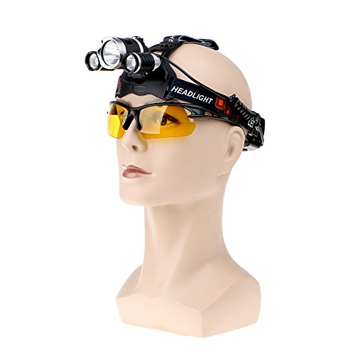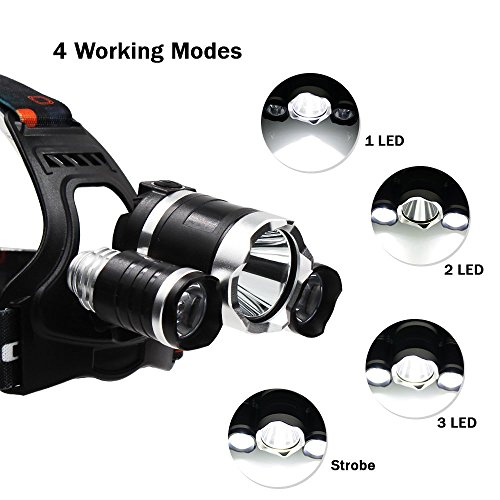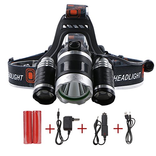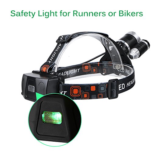 Headlamp MECO Super Bright Headlight LED Headband Light waterproof Head Flashlight with 2 Pack 18650 Rechargeable Batteries and Wall Charger Car Charger for Hiking Camping Riding Fishing Running