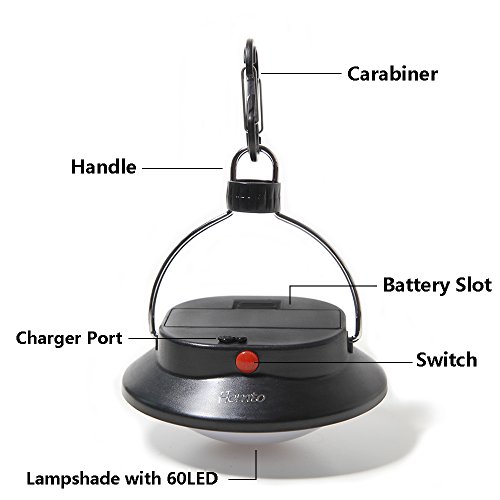 Homto Brightest 60 LED Camping Tent Lantern Light Patio Lamp Battery Operated 3 Brightness Level for Hiking,Fishing,Camping,Garden and Outdoors(Powered by 18650 or 3AAA battery,High-Medium-Dim Lights)