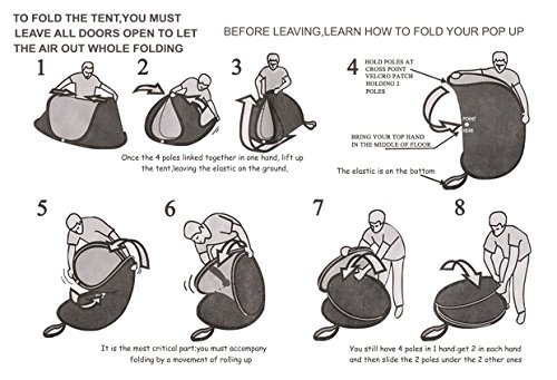 Tent Dimension: 95 x 57 x 39 inches & Fold Down Dimension: 31.5 ” diameter x 1.2″ thick