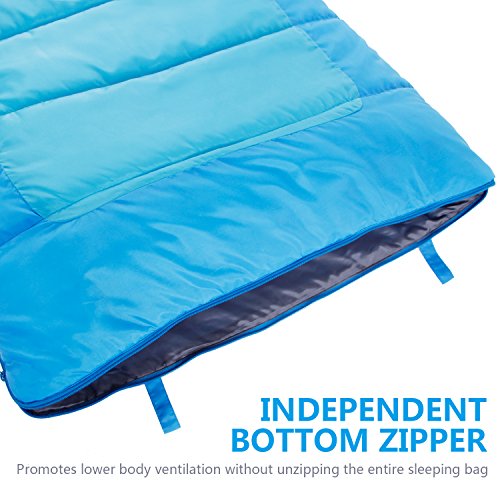 Providing plenty of warmth in temperatures as low as 59 degrees, this durable, lightweight, and cozy sleeping bag delivers a comfortable sleep at the campsite, hostel, and other overnight stays