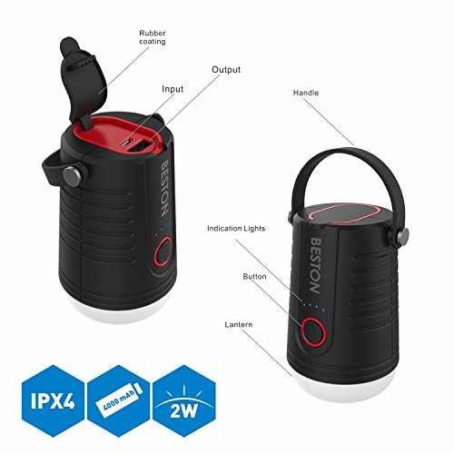 LED Lantern, BESTON Rechargeable Camping Lantern (Tent Light) with 4000mAh External Battery Charger – Waterproof – Suitable for Backpacking, Hiking, Hurricane Outages