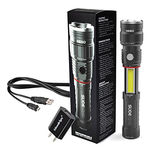 Nebo 6434 Slyde King 330 Lumen USB rechargeable LED flashlight/Worklight, rechargeable Li-ion battery with EdisonBright USB charger bundle