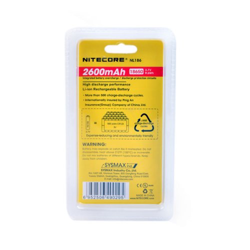 Nitecore 18650 3.7V 2A 9.6Wh 2600mAh Protected Li-ion Rechargeable Battery-Black+Yellow(NL186)