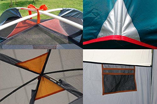 SPACIOUS 5 to 6 Person (aduls/youngsters), 1 Door Tent Designed for Simple Assembly. Super 6FT height for optimum comfort. Floor Size: 9.8FT x 9.8FT / Center Height:five.9FT / Weight: 15.2LB. NEW 40 YEAR. CELEBRATION FREE PROMO GIFT INCLUDED: LED STORM STRETCH LIGHT WITH BATTERY VALUED AT USD14.99.
