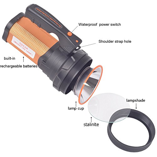 Super bright light;Provides the lighting distance up to 2600 feet (800 meters) and two different light mode,Detachable shoulder strap and convenient carrying handle