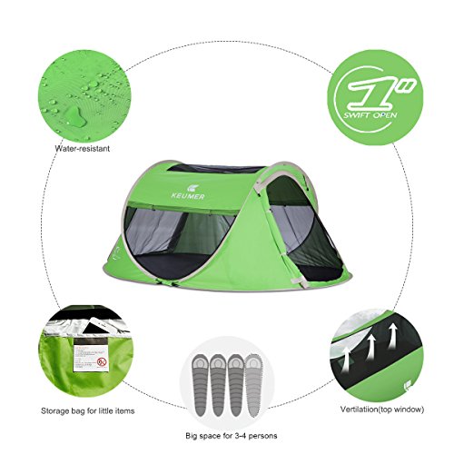 Pop Up Tent by DEVAISE-Automatic and Instant Setup-Waterproof and Anti-UV for 3-4 Person for Hiking and Camping