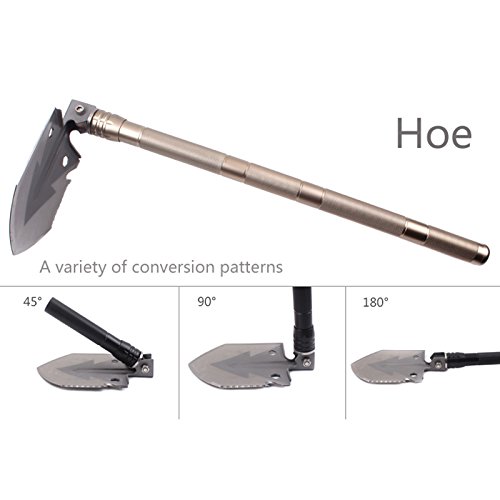 Multi-serve as:Compass,digging, sawing, chopping, cutting, picking, prying, hammering, bottle opening, shoveling.