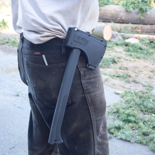 SOG Specialty Knives & Tools F17N-CP BadAxe BackCountry 2-In-1 Axe with 3-Inch Straight Edge Steel Blade and Black Molded Nylon Sheath, 16-Inch Length