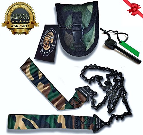 Sportsman Camo Pocket Chainsaw 36 Inch Long Chain & FREE Fire Starter! This Hand Saw Tool is Best for Survival Gear – Camping – Hunting or Home Owner. Replaces a Pruning or Folding Saw. Full Guarantee