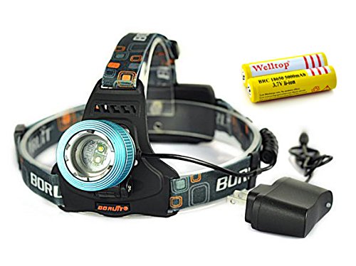 Welltop® Zoomable 1800Lm CREE XPE Q5 2 X LED Rechargeable Fishing Headlamp Headlight 18650 Headlamps Head lights White and Blue Lights For Night Fishing Hunting with 2Pcs 18650 5000 Mah Rechargeable Battery and AC Charger